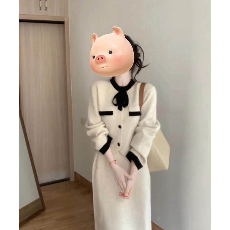 - 针织拼接连衣裙秋