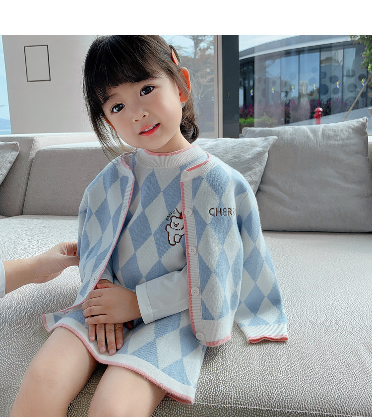 女童洋气针织套装2025秋冬新款韩版宝宝针织开衫+背心裙儿童毛衣