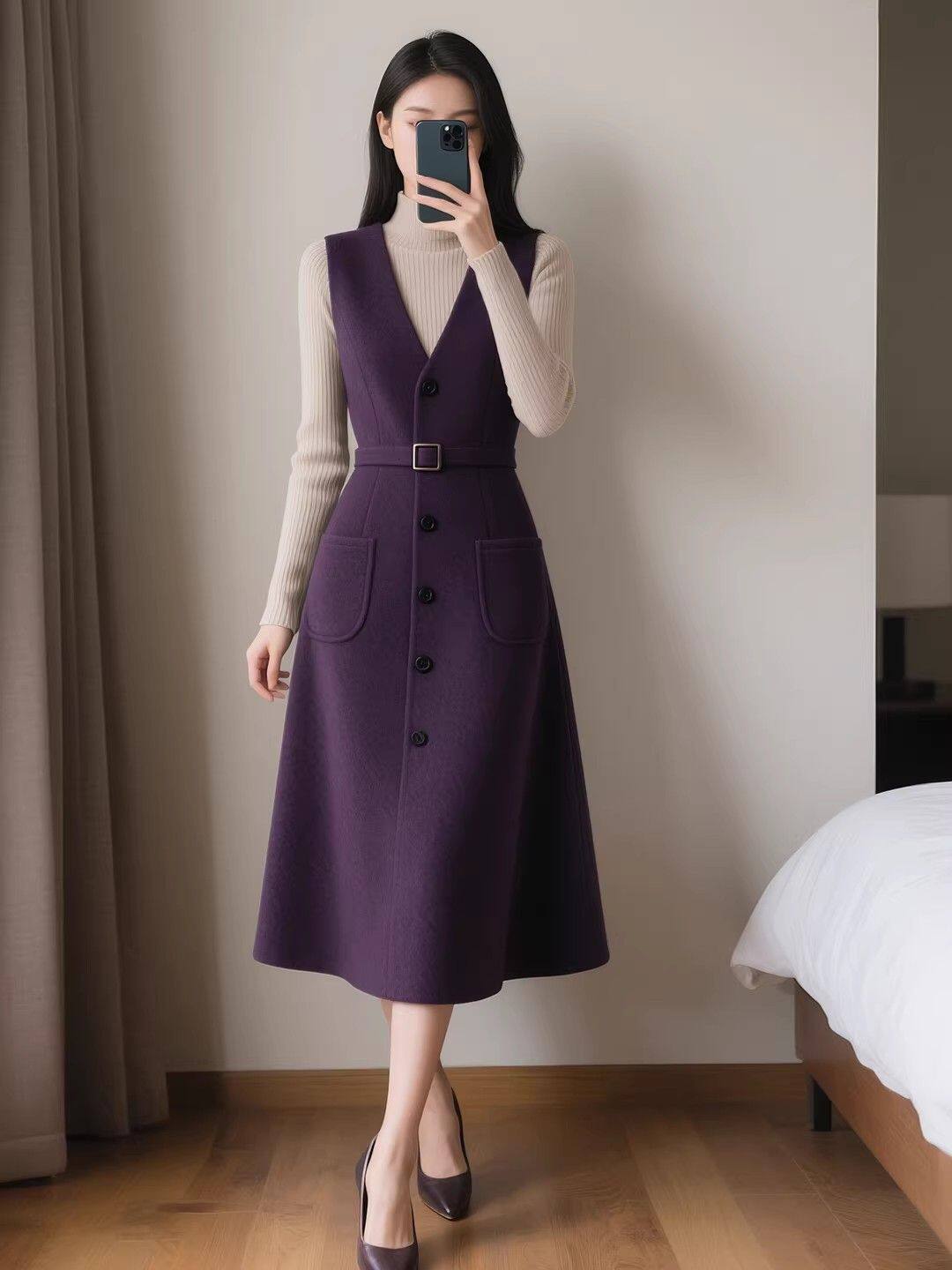 - 秋冬无袖毛呢背心裙