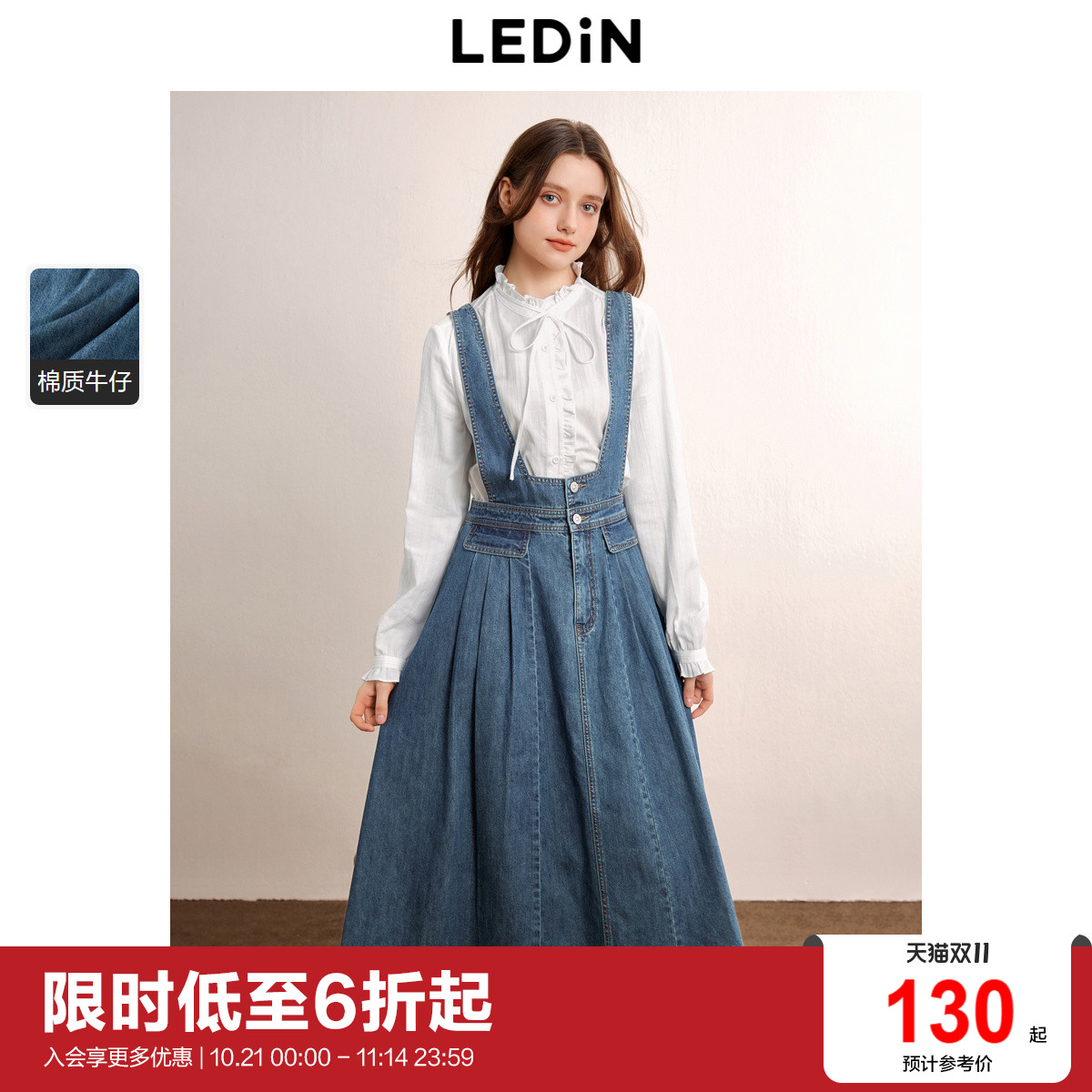 LaceMade 樱桃牛仔 法式甜美定制刺绣吊带连衣裙通勤背带牛仔裙秋