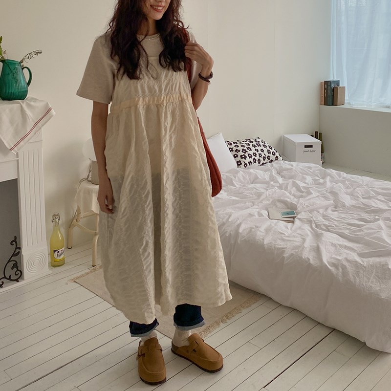 大嘎daga日杂连衣裙女夏2025新款背心牛仔吊带长裙背带裙两件套装