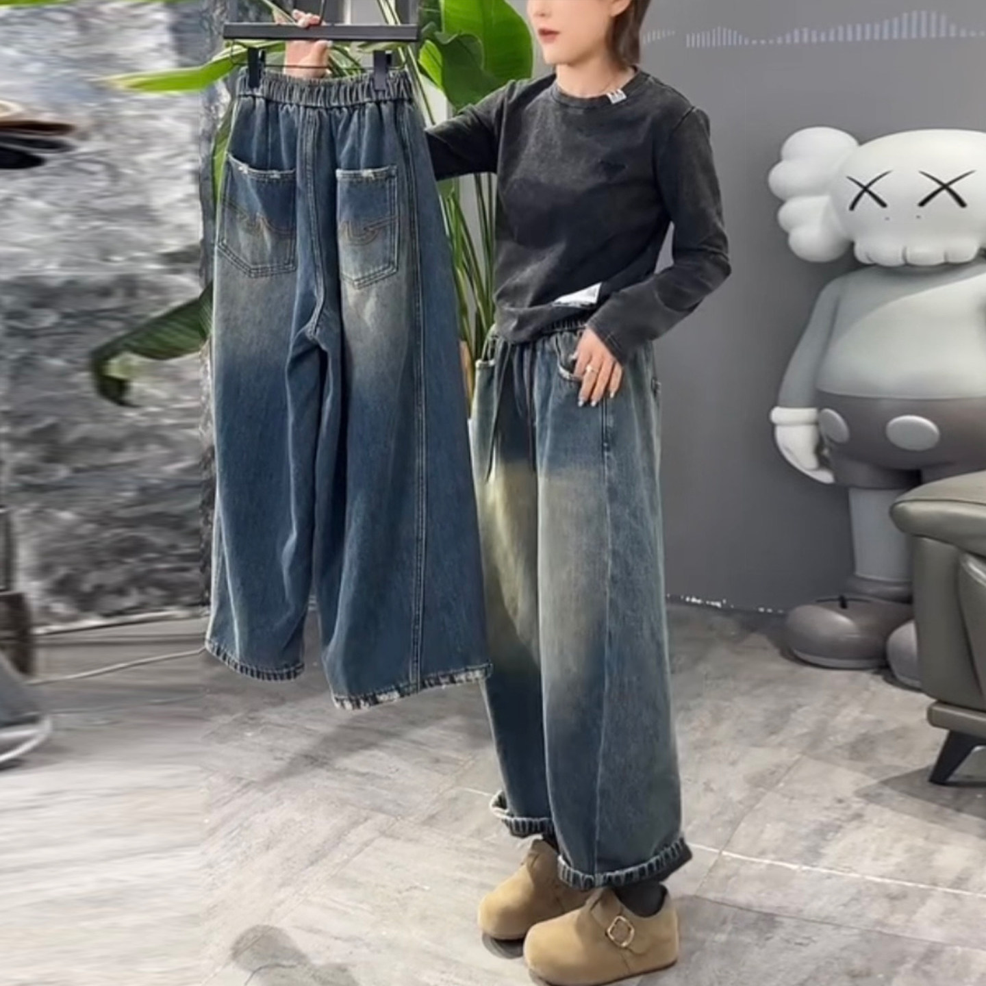- 牛仔阔腿裤秋冬