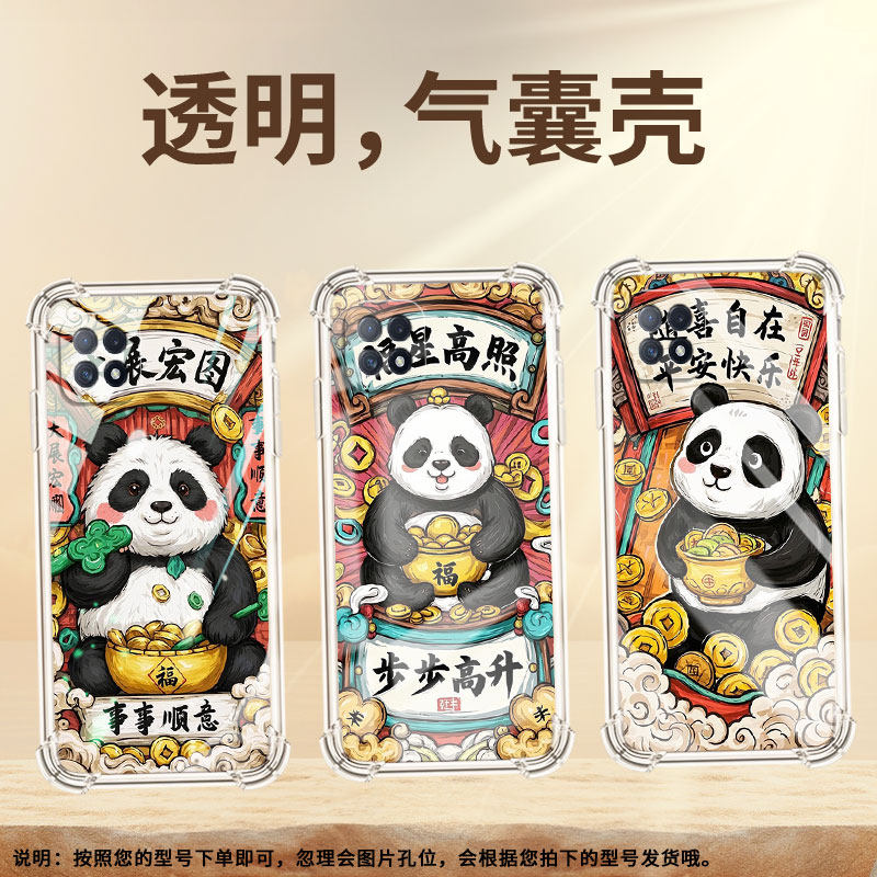 适用OPPOA33手机壳0pp0A55简约OPPOA38憨态可掬熊猫OPPOA56s防摔OPPOA53s气囊壳高级感中国风全包边保护套