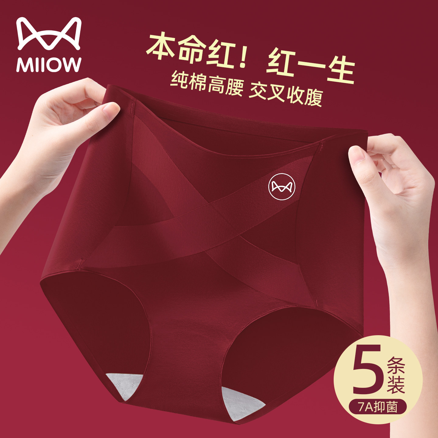 猫人本命年红色内裤女款纯棉抗菌高腰收腹女士三角裤结婚礼物马年