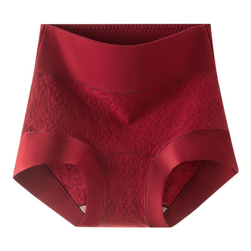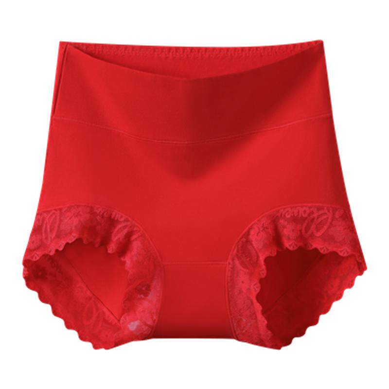 洁韵朵本命年红色内裤女性感蕾丝收腹大码纯棉抑菌裆结婚礼物短裤
