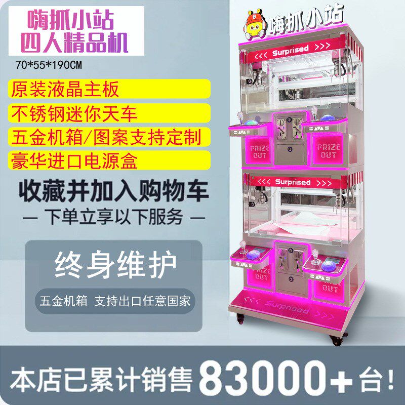 精品迷你抓娃娃机双人四人小型家用迷你夹公仔机儿童商用夹糖果机