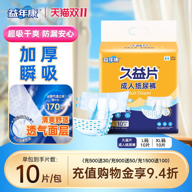 益年康久益片成人纸尿裤 老年人尿不湿 特大码xl码孕产妇尿布男女