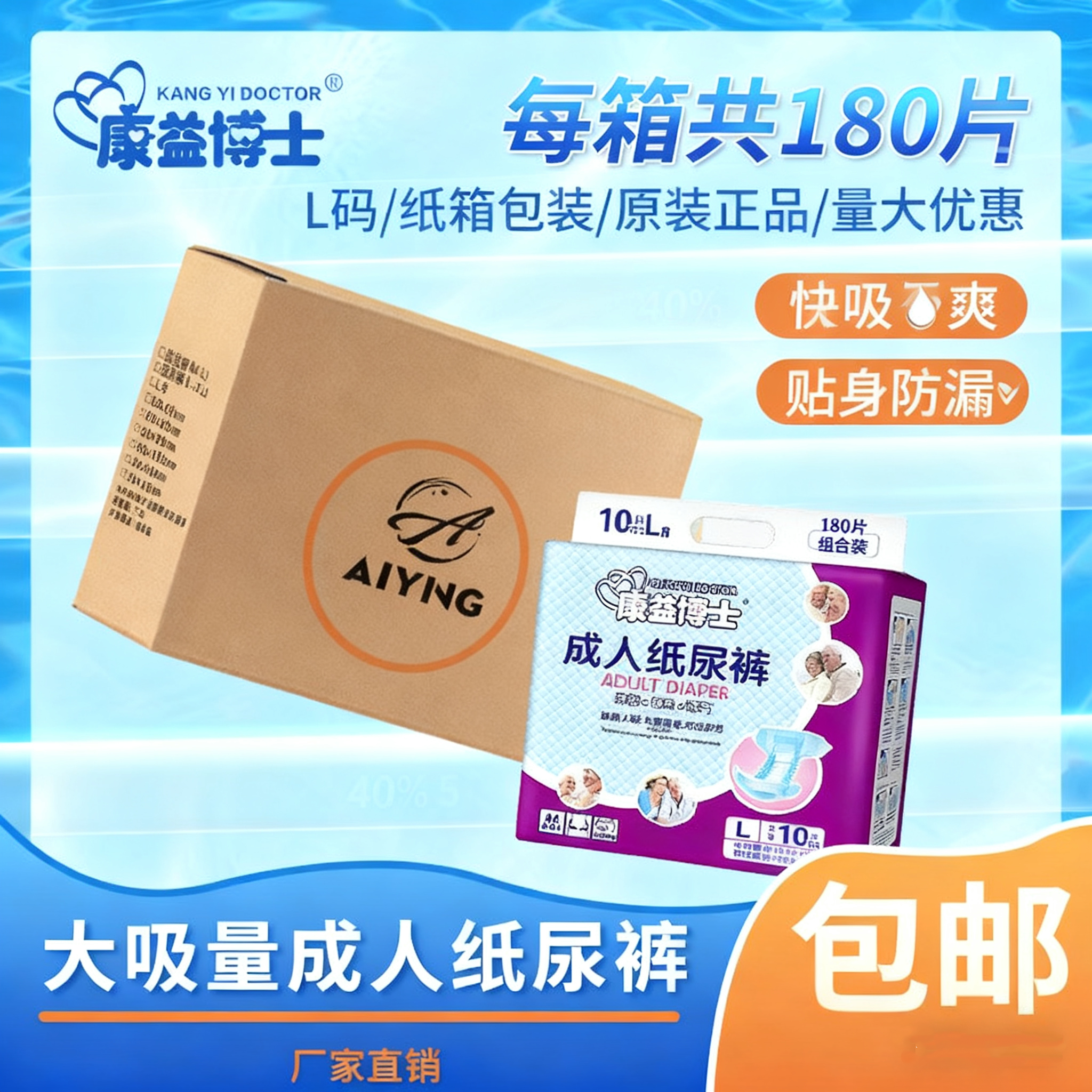 180片箱装L号成人纸尿裤 老年人尿不湿 大人尿裤批发超值装 康益
