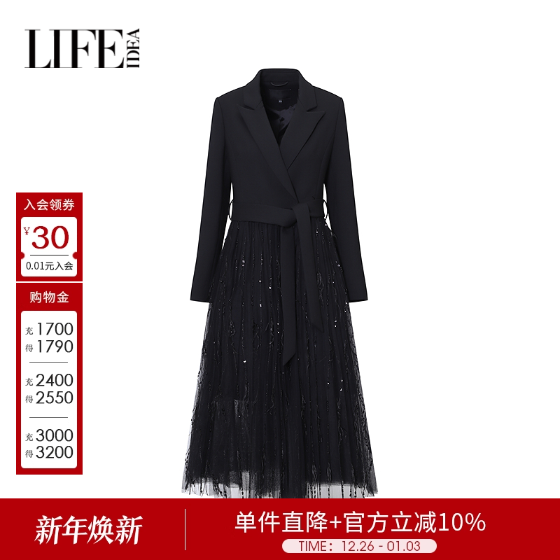 辰米范 黑色收腰毛呢大衣女秋冬新款羊毛中长款加厚呢子西装外套