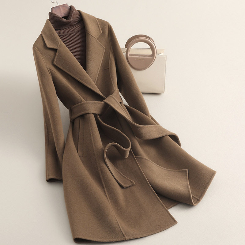 贵夫人腰带羊绒大衣女收腰赫本风中长款气质2025新款显瘦毛呢外套