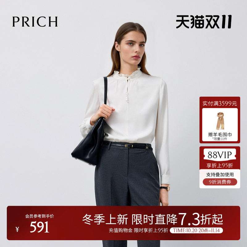 【缎面】PRICH简约荷叶边立领衬衫2025冬季新款肌理感气质上衣女