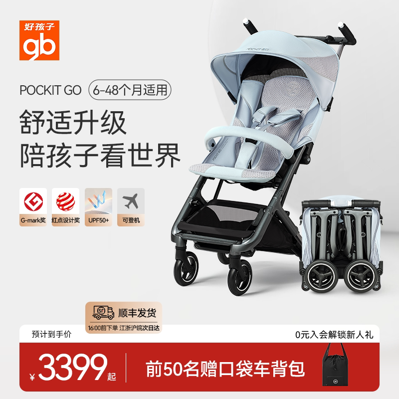 好孩子口袋车国际版pockit+ 3SF可坐半趟可登机配睡篮小巧伞车