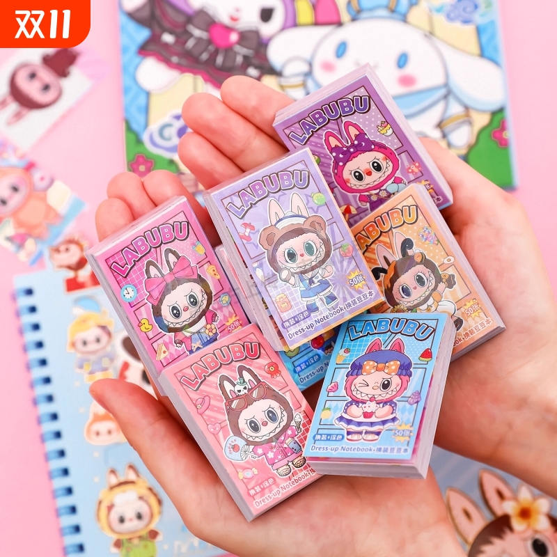 卡通拉布布豆豆本迷你新款可爱创意涂色本画画换装贴纸手帐本小学生粘贴画女孩手工diy玩具labubu杯子人物