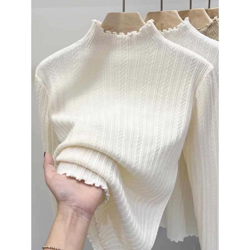 白色打底衫女秋冬季内搭2025新款半高领木耳边针织上衣高级感毛衣