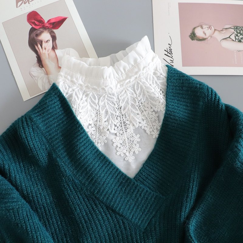 花边半高领春秋立领假领子女衬衫百搭假领抗皱白色打底毛衣装饰领