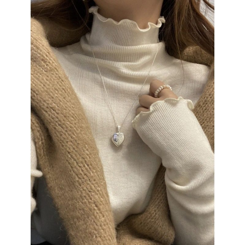 龙妹家白色打底衫女内搭2025新款秋冬穿搭木耳边针织毛衣长袖上衣