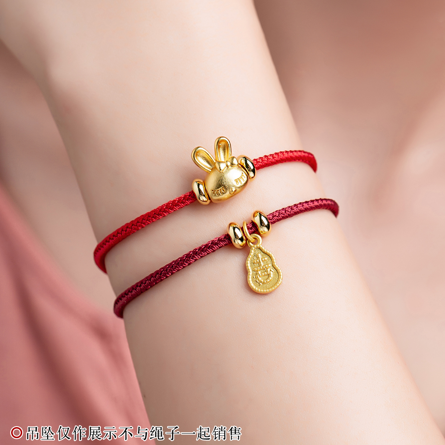 庆祥泰可穿黄金极细手绳女款手工编织绳半成品diy转运珠红绳手链