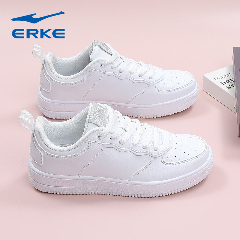 鸿星尔克纯白板鞋女秋冬新款女士皮面防水运动鞋学生平底小白鞋子