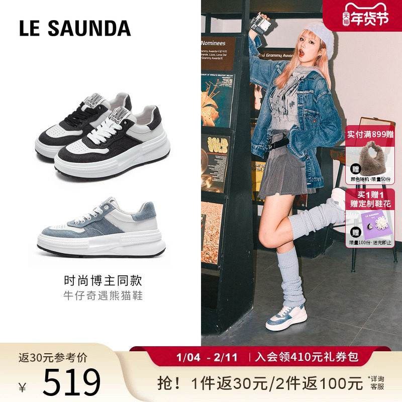 [牛仔熊猫]莱尔斯丹YOUNG圆头厚底增高运动休闲黑白板鞋女5M66502