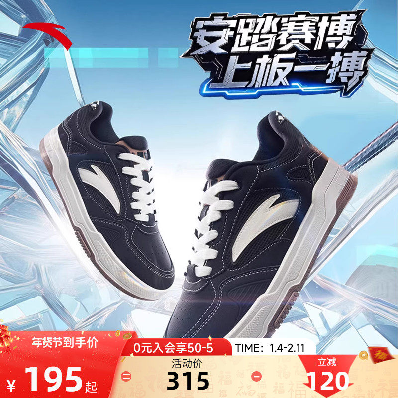 【王一博同款】安踏赛博低帮黑白板鞋女鞋百搭小白鞋情侣运动鞋子