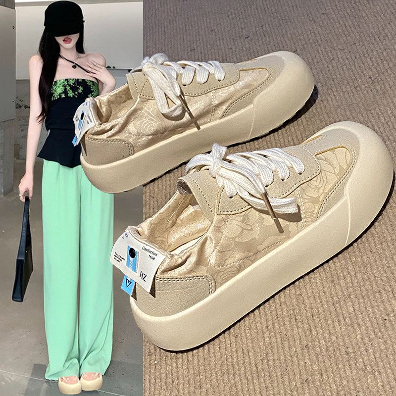丑萌大头小白板鞋女2024年夏季新款百搭厚底复古休闲爆款德训鞋女