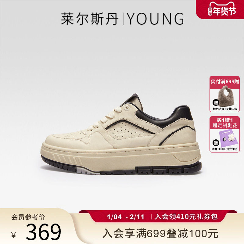 莱尔斯丹YOUNG厚底增高小白板鞋女撞色低帮休闲运动鞋子4T39601