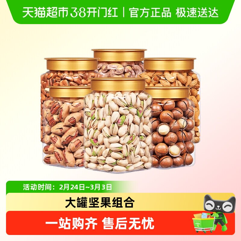 百草味罐装坚果组合东北松子开心果腰果夏威夷果过年送礼零食囤货