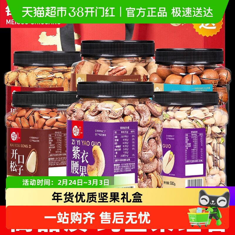 百草味坚果礼盒罐装组合3罐干果腰果开心果松子年货零食过年送礼