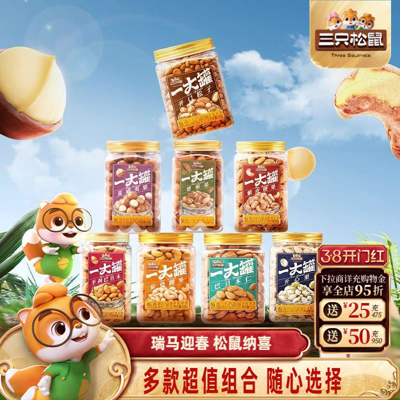 坚果干果零食组合开心果巴旦木腰果松子罐装散装批发年货2025新货