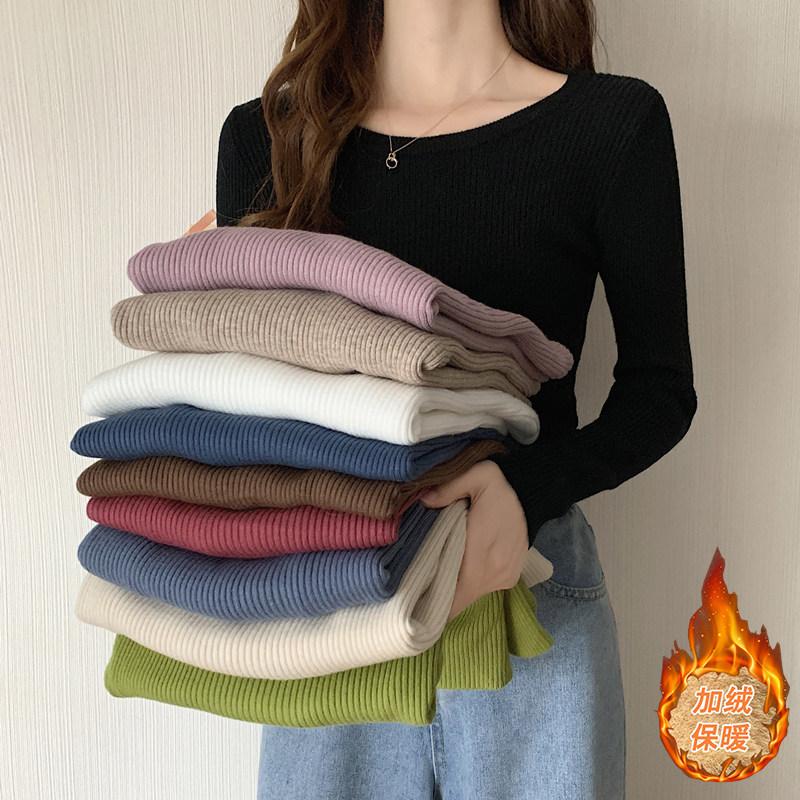 - 圆领紧身长袖针织衫女