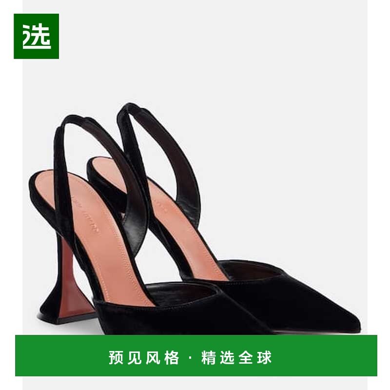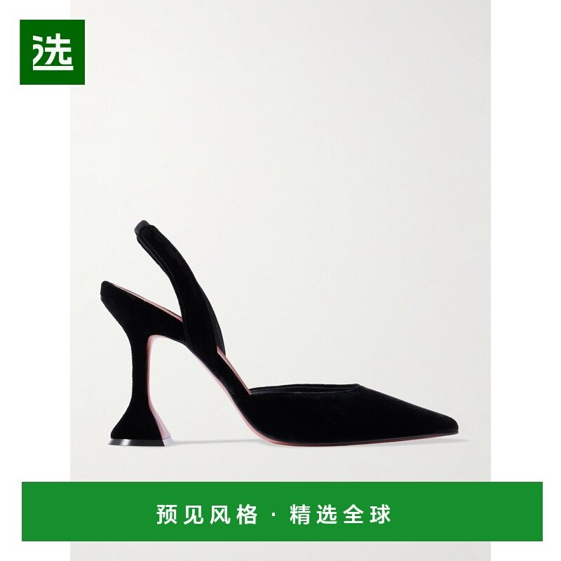 1h可退 香港直邮Amina Muaddi 女士 Holli 95 天鹅绒露跟浅口鞋