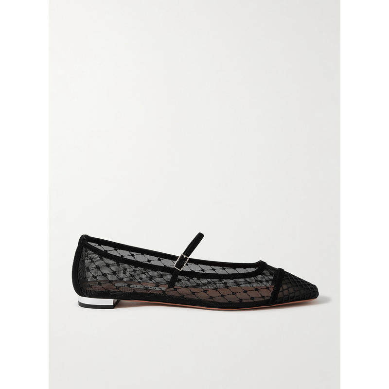 Aquazzura 女士 芭蕾鞋 Juliette 天鹅绒饰边刺绣网纱芭蕾舞鞋