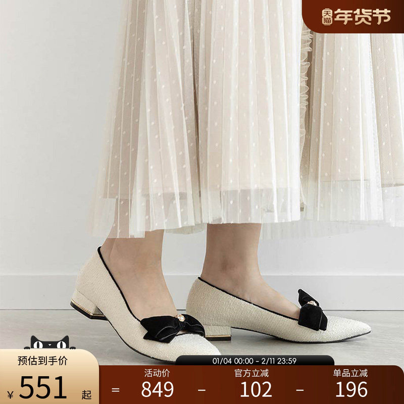 RANDA 25早秋新款天鹅绒蝴蝶结珍珠纽扣休闲平底高跟鞋 PP36008