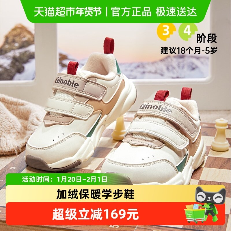基诺浦机能鞋冬男女宝宝亲肤保暖天鹅绒小童鞋学步鞋GW1662