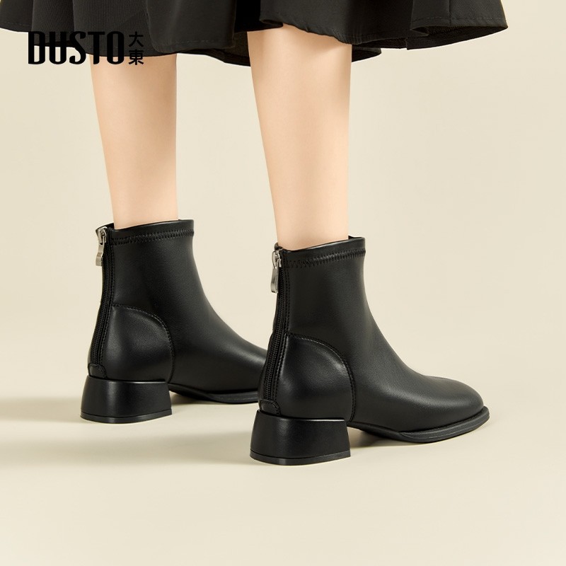 大东瘦瘦靴短靴女2025新款秋冬高跟鞋黑色粗跟女士靴子切尔西女靴