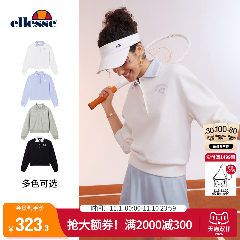 【明星同款】ellesse小贝壳官方秋冬撞色POLO领长袖卫衣女