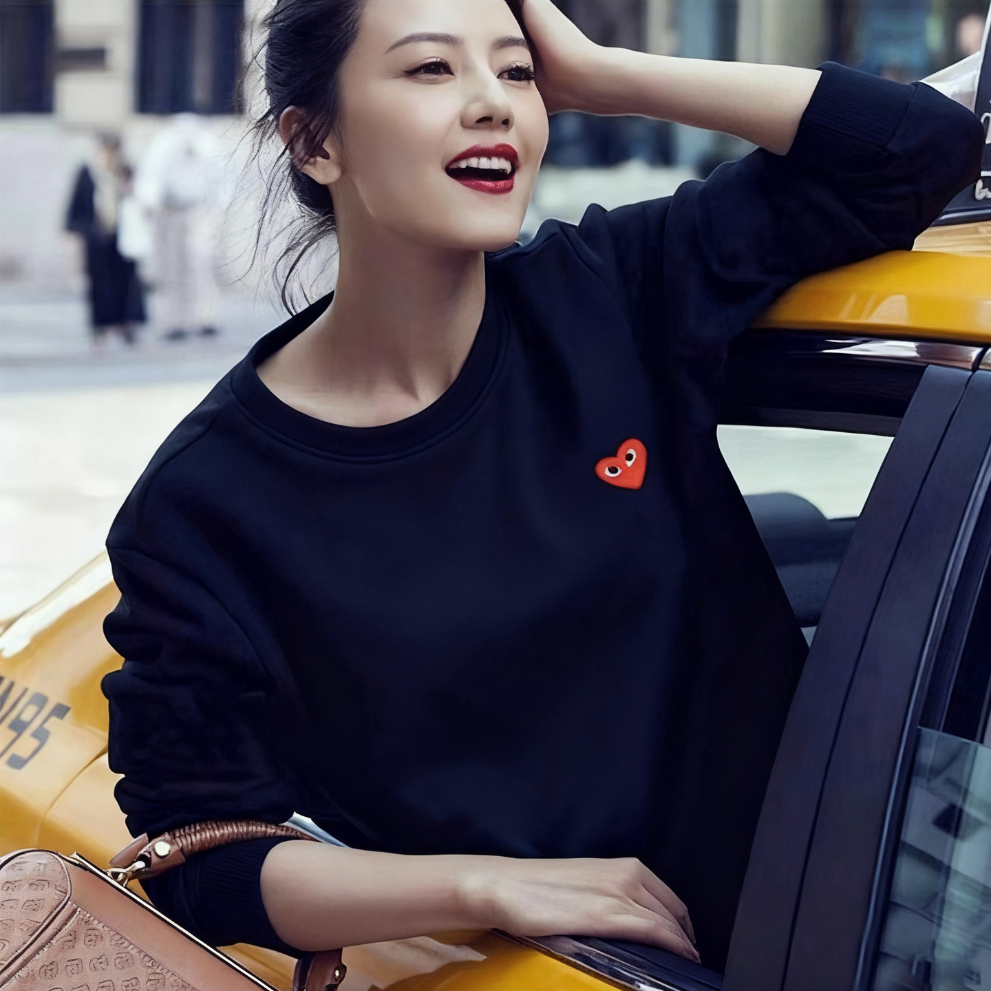 日系刺绣爱心圆领卫衣男女情侣明星同款潮牌秋冬加绒薄款宽松定制