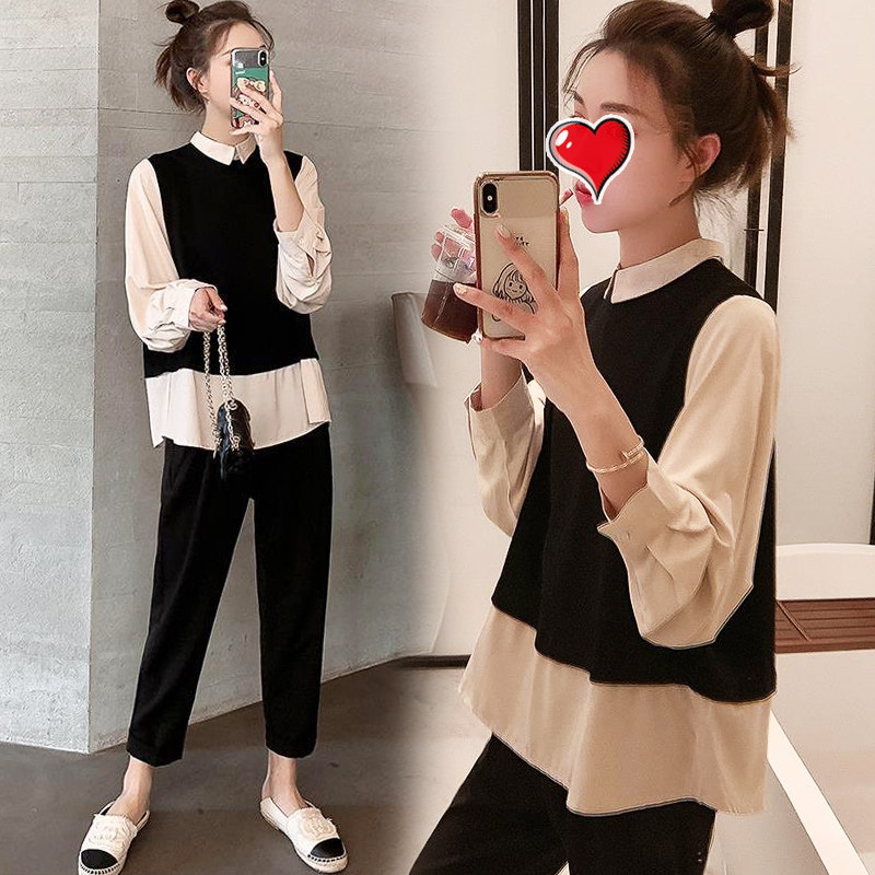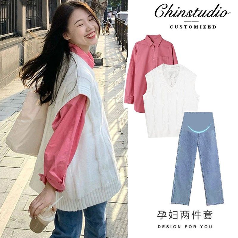 孕妇春装套装时尚2024新款时髦洋气衬衫春秋季马甲时尚外出两件套
