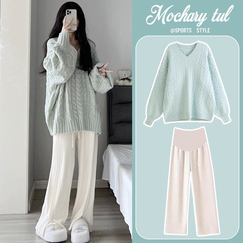 孕妇春装套装时尚毛衣春款2024新款宽松小个子大码两件套春秋上衣