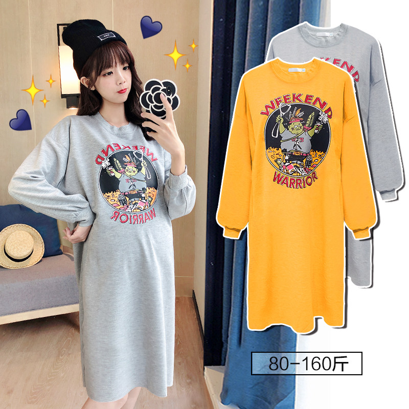 孕妇春装套装时尚春秋款大码宽松T恤上衣中长款卫衣连衣裙两件套