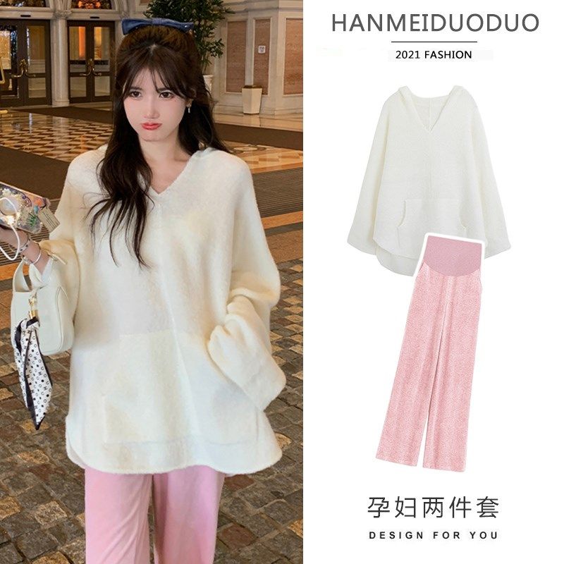 孕妇春装套装时尚款网红春季连帽上衣春秋款新款加厚孕妇毛衣秋冬