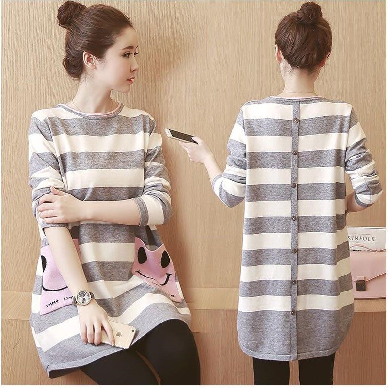 孕妇装春装套装时尚款潮妈洋气条纹孕妇连衣裙中长款T恤孕妇上衣