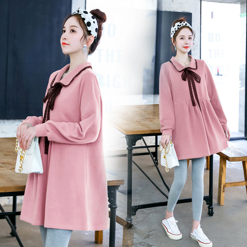 孕妇春装套装时尚新款套头卫衣长袖上衣中长款打底t恤衫春秋季女