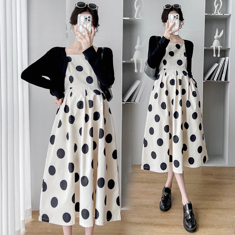 新款孕妇装春装套装时尚款波点吊带裙+外套显瘦两件套连衣裙长裙