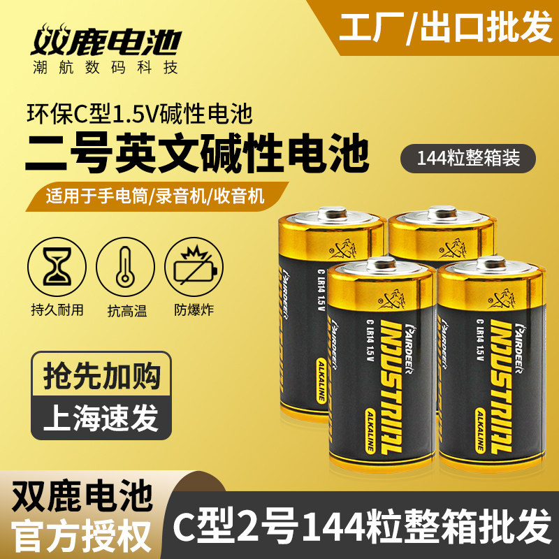 双鹿2号电池二号高能碱性LR14中号电池费雪玩具摇椅乐高赛车宝贝玩具面包超人花洒C号工业出口英文电池批发