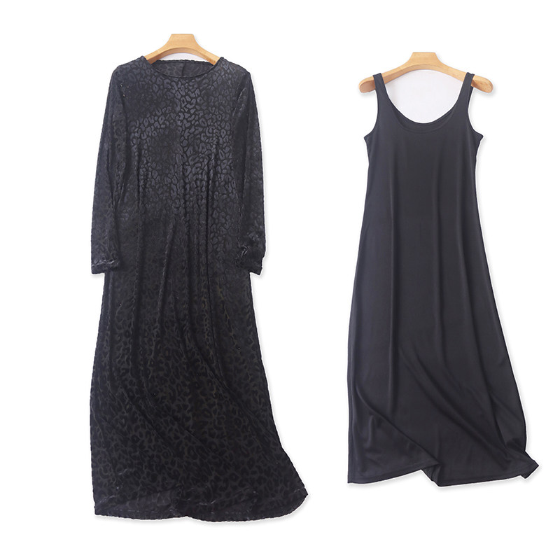 蕾丝连衣裙两件套 秋新外贸女圆领套头长袖长裙+打底吊带裙29637