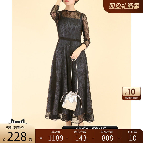 RANDA 日系气质镂空蕾丝飘逸两件套长袖显瘦连衣裙女 BD01372