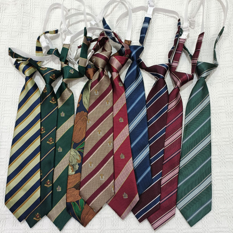 JK学生学院风条纹男女生复古日系免打拉链手打dk衬衫配饰正装领带