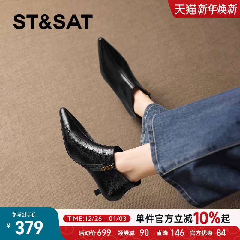 - 尖头短靴 中跟
