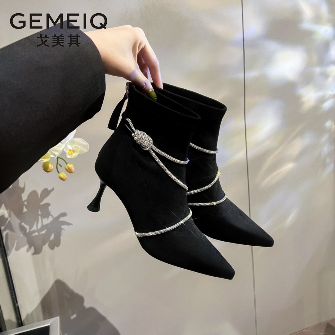 - 尖头高跟短靴